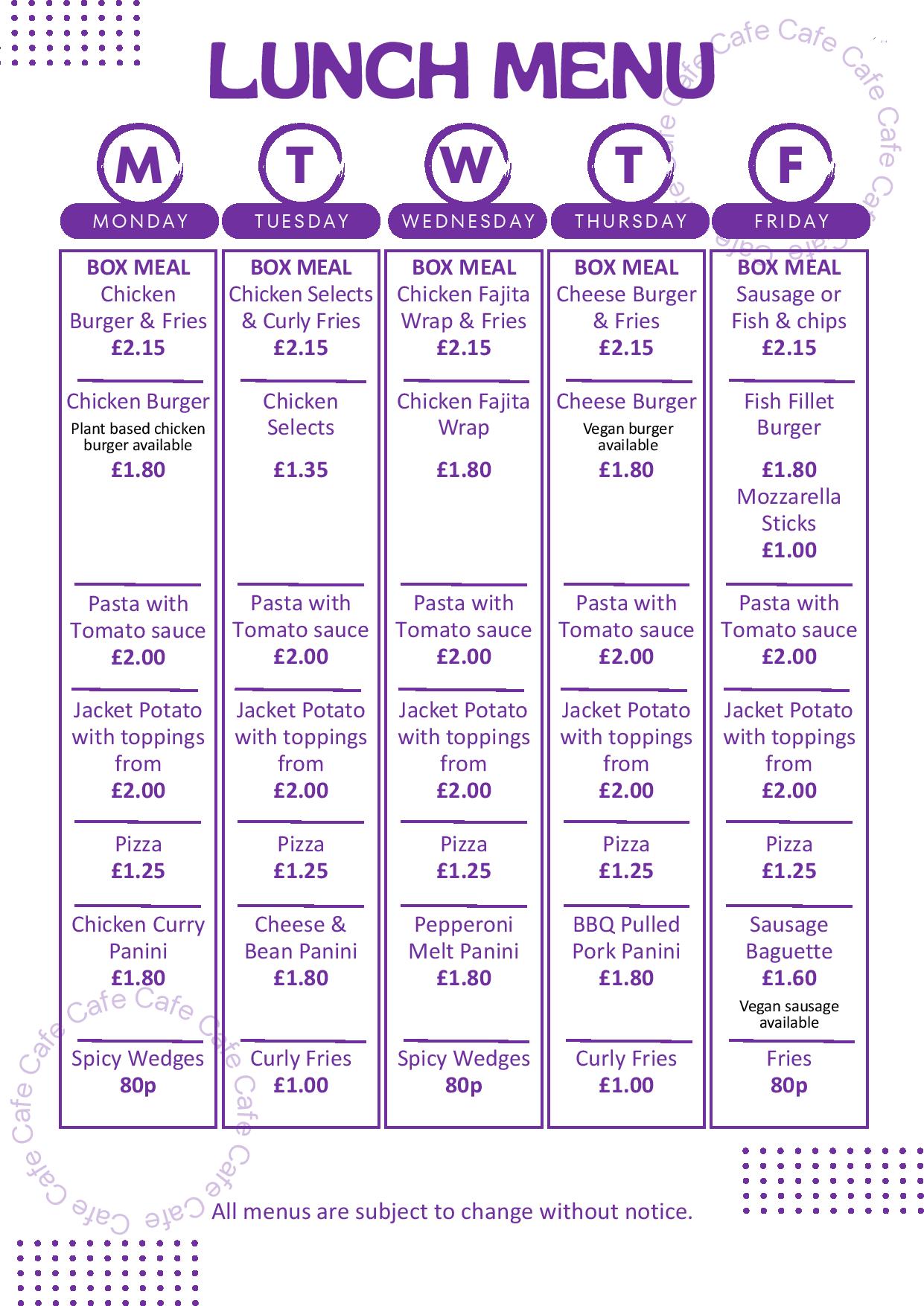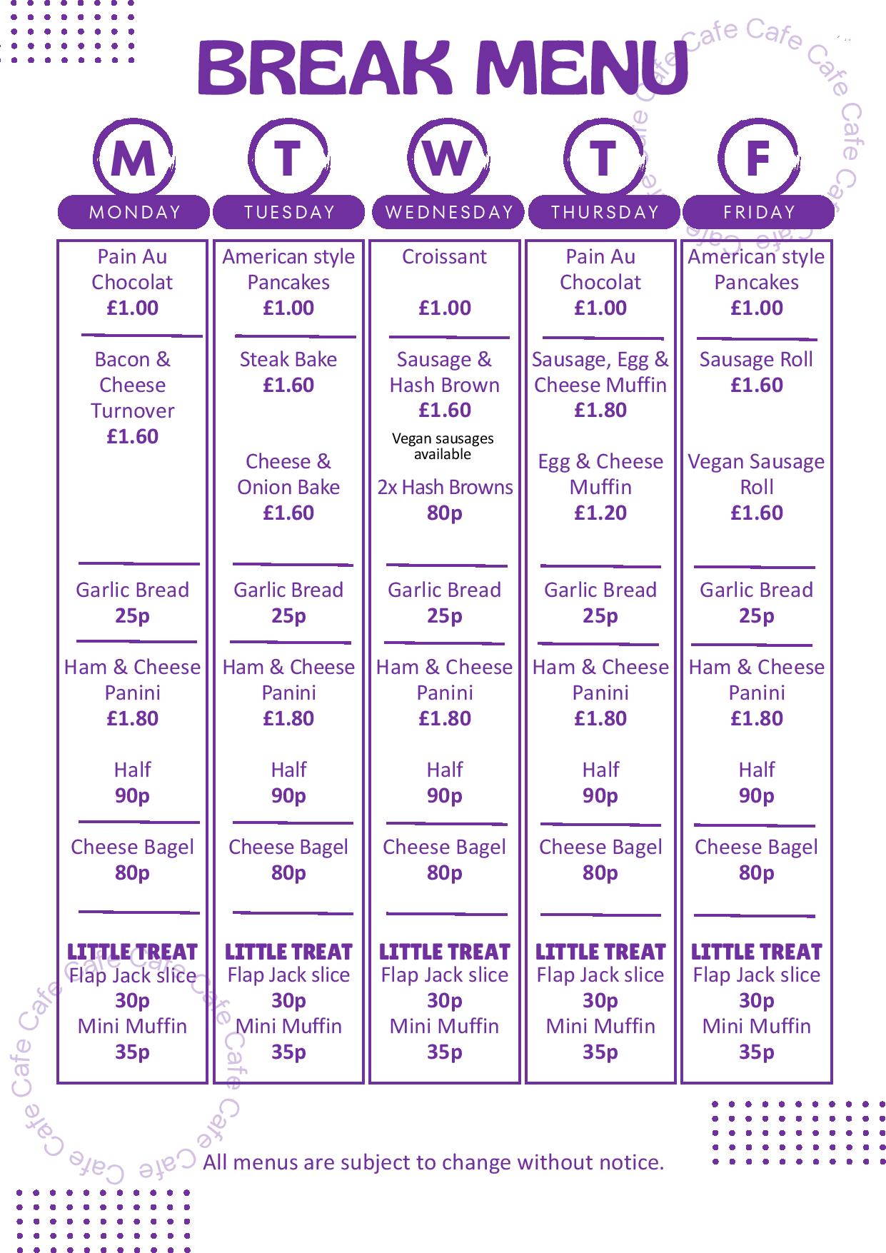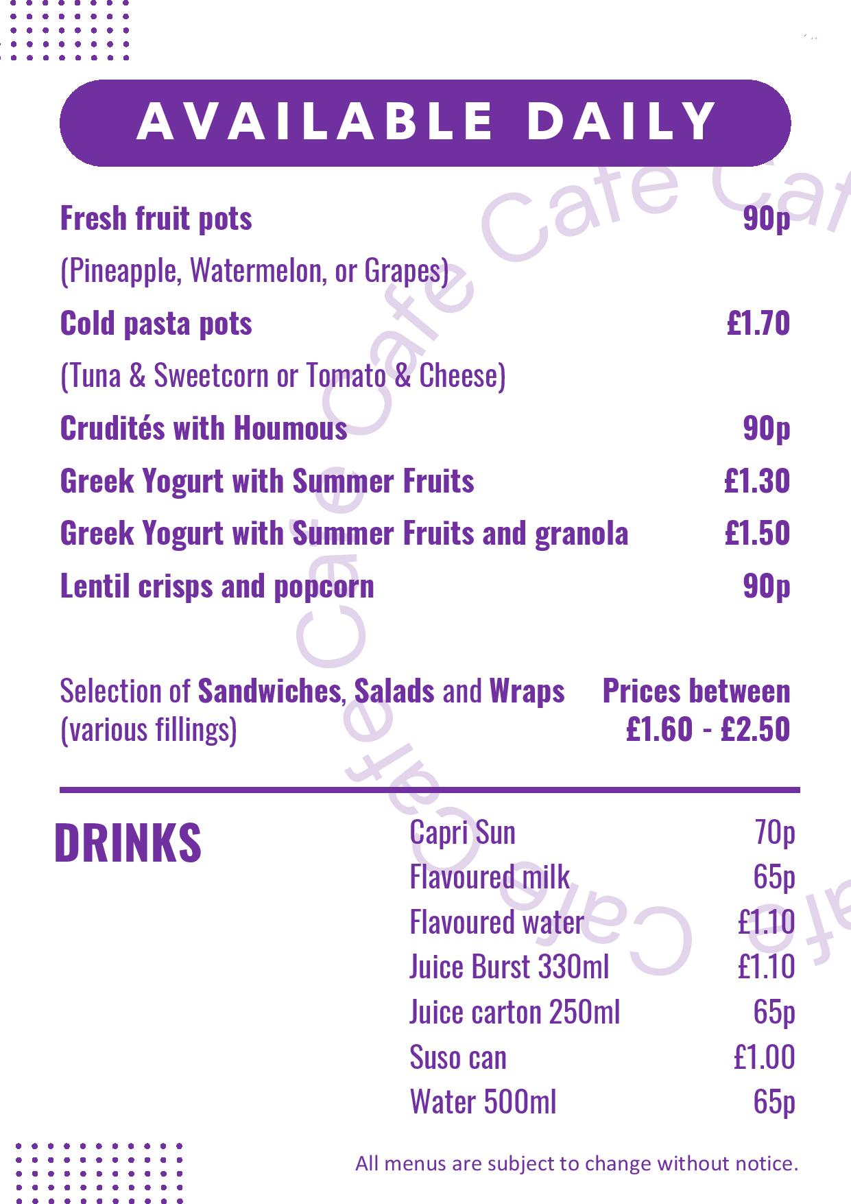 Please see below for our latest AHA Cafe Menus: